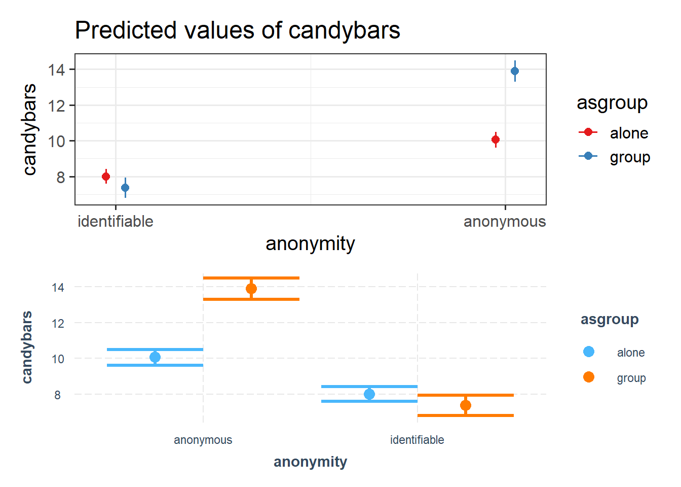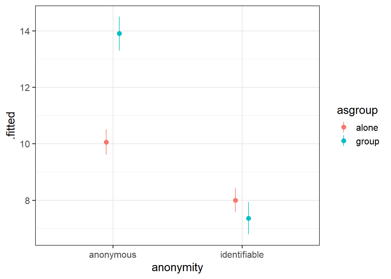 p2 <- interactions::cat_plot(eg3mod, pred = "anonymity", modx = "asgroup", interval = TRUE)