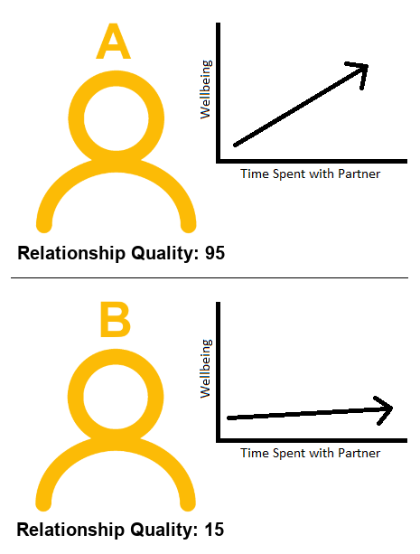 Person A (who has a really great relationship), will probably increase in wellbeing if they were to spend more timewith their partner.