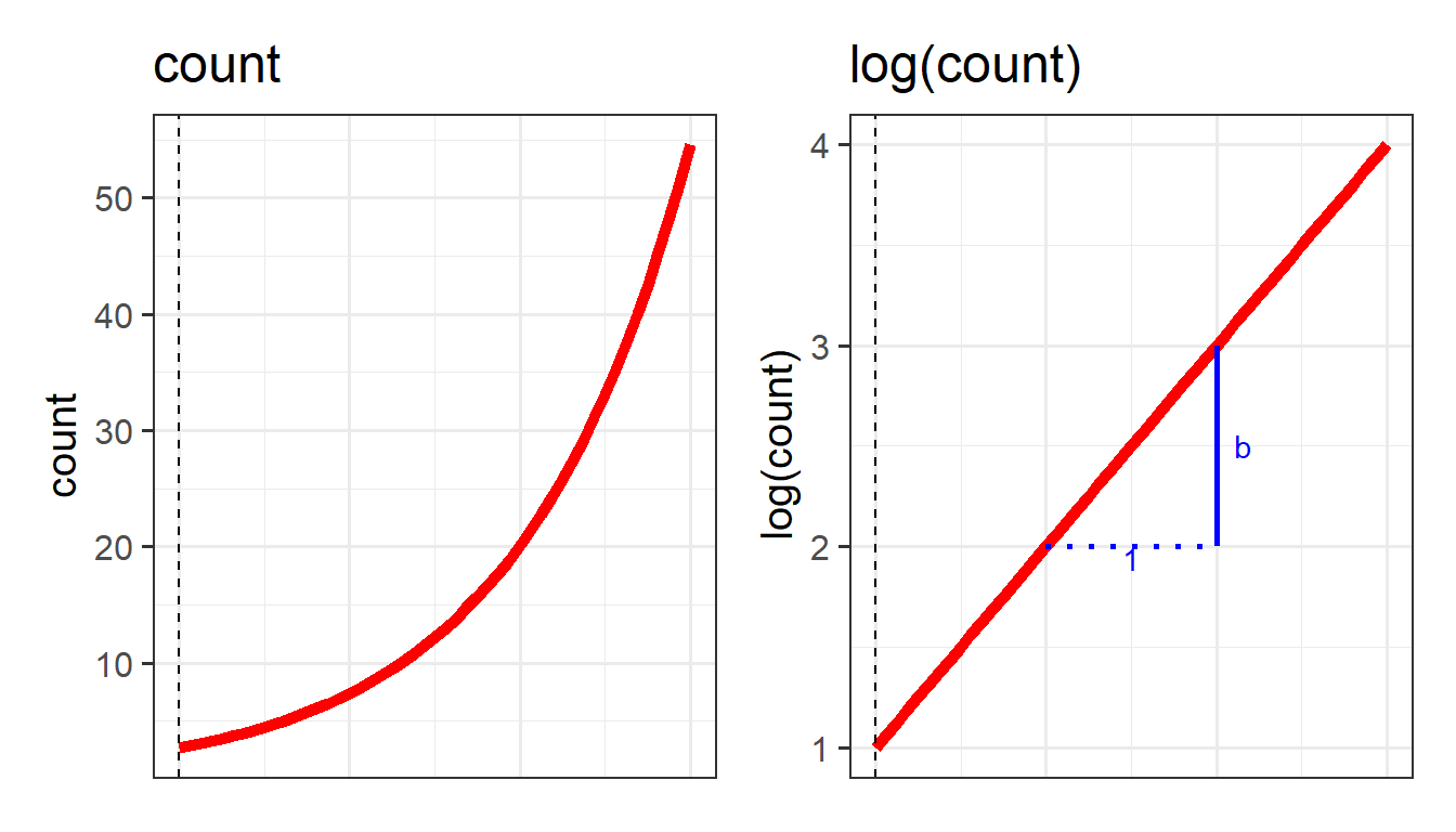 We use a similar trick for modelling an outcome that is a count - instead of modelling counts directly, we can model the log of the counts.
