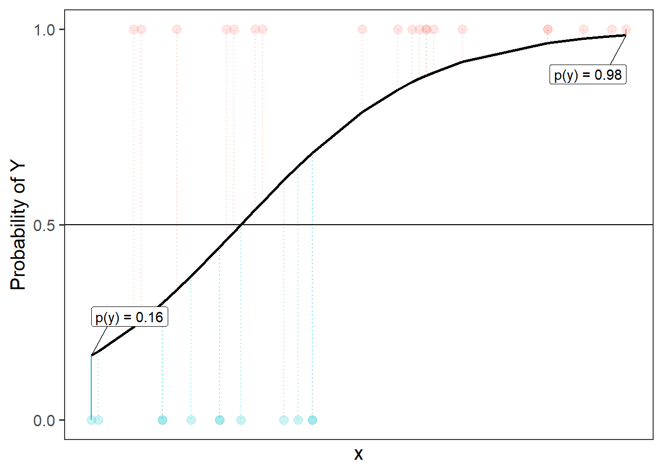 )For these models, we can actually predict on various different scales (e.g. do we want to predict log-odds values (predict(mod, type="link")) or probabilities (predict(mod, type="response"))?