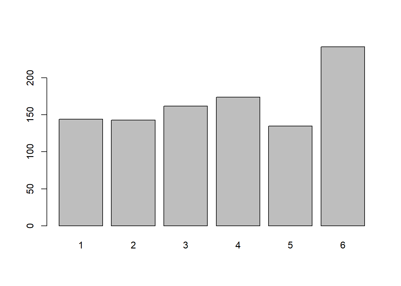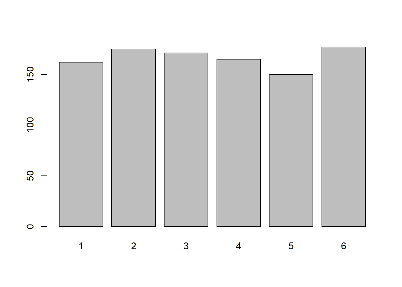 Putting it all together, our dice() function “throws num dice” by sample()ing from the numbers 1-6 num times, replaceing each number when it’s been picked, and sums the numbers of all the dice.