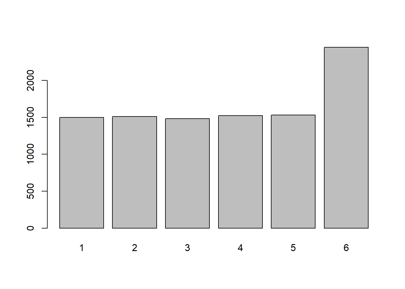 Let’s try to modify the wdice() function. Edit the code for wdice() so that 50% of the time it lands on number 6.