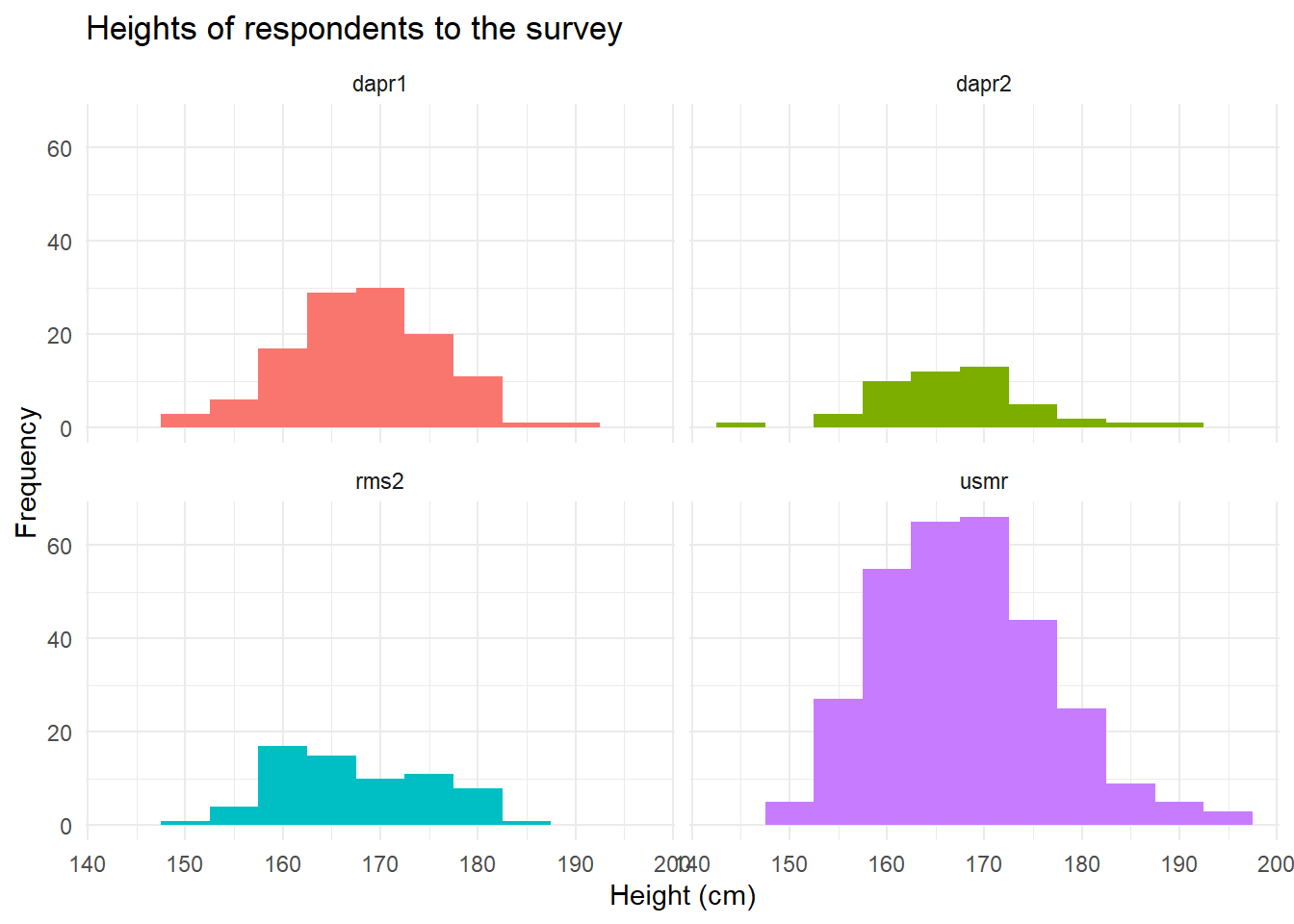 Plot the distribution of heights of all respondents. Try to make it ‘publication ready’.