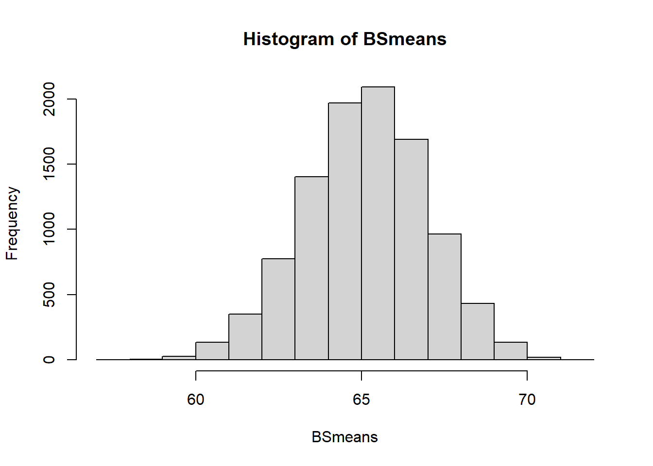 bootstrap_means <- replicate(1000, mean(sample(observed_sample, replace = TRUE)))- Create an object that contains the 10,000 means from 10,000 resamples of our sleep ratings.