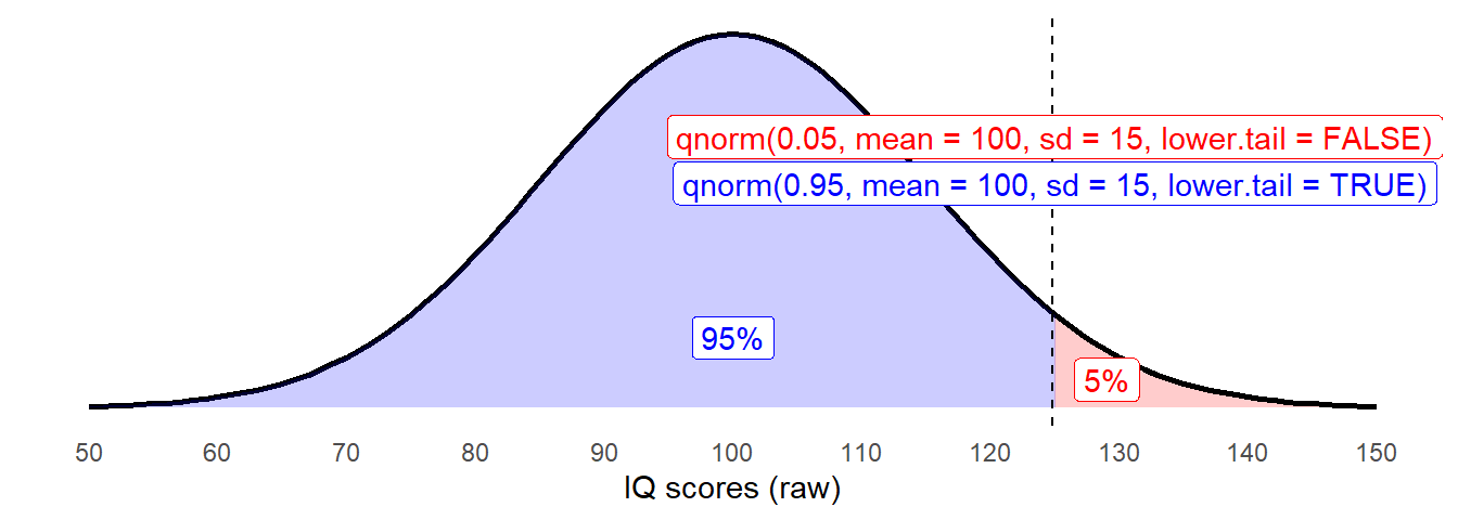 qnorm(0.05, mean = 100, sd = 15, lower.tail = FALSE)