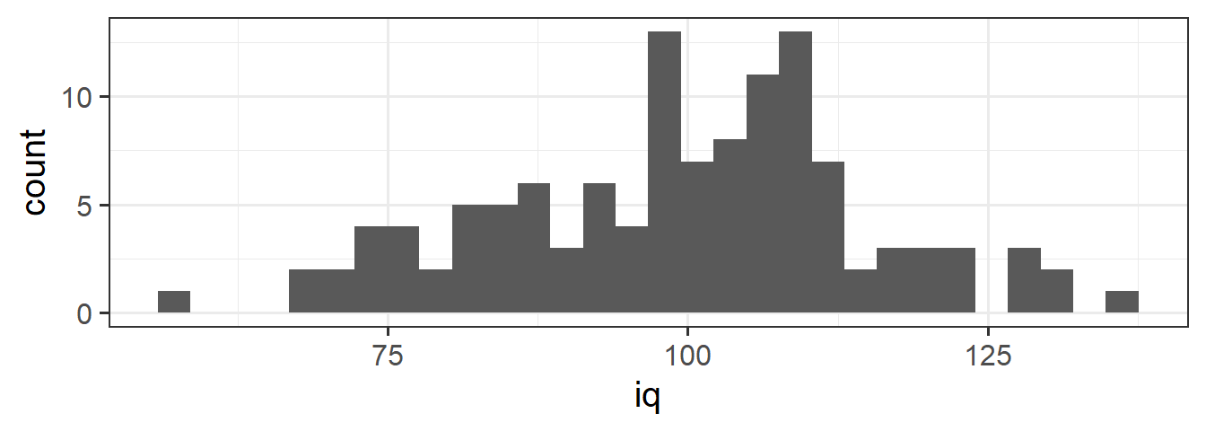 ggplot(data = wechsler, aes(x = iq)) +