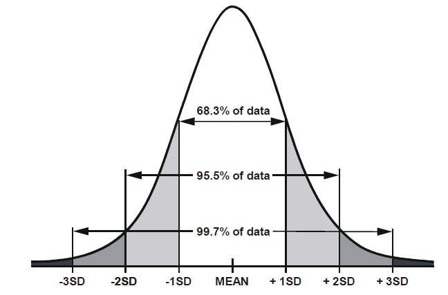 - 99.7% of values will lie within 3 standard deviations of the mean.