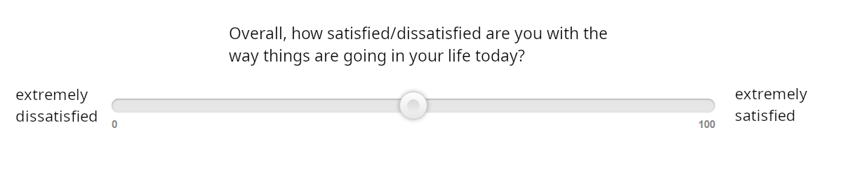 The same applies when we take are taking the mean of a sample. Suppose we are interested in the average “life satisfaction rating” (Figure 9) for the entire adult population.