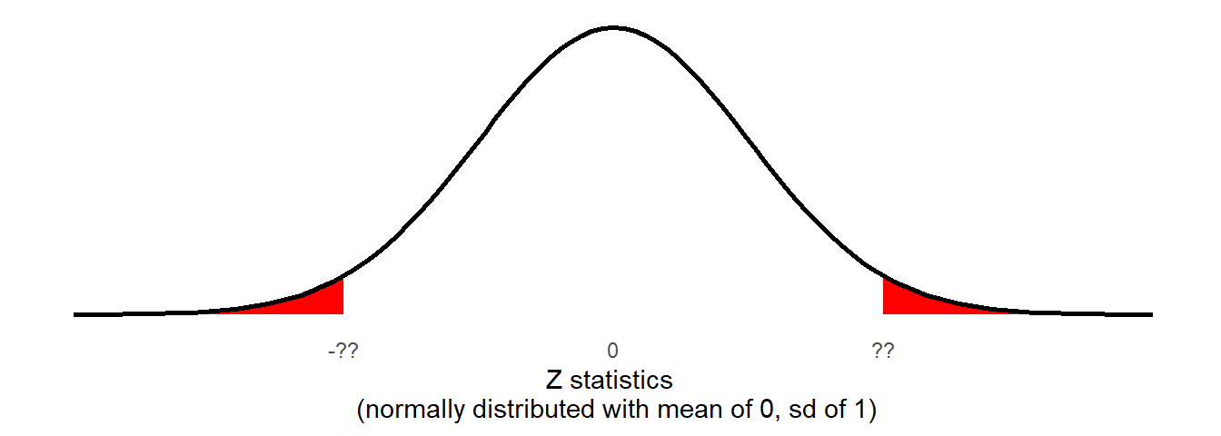 The straightforward way to do this is to express how far away from \(\mu=0\) our sample mean is in terms of standard errors. We’ll call our test statistic \(Z\):
