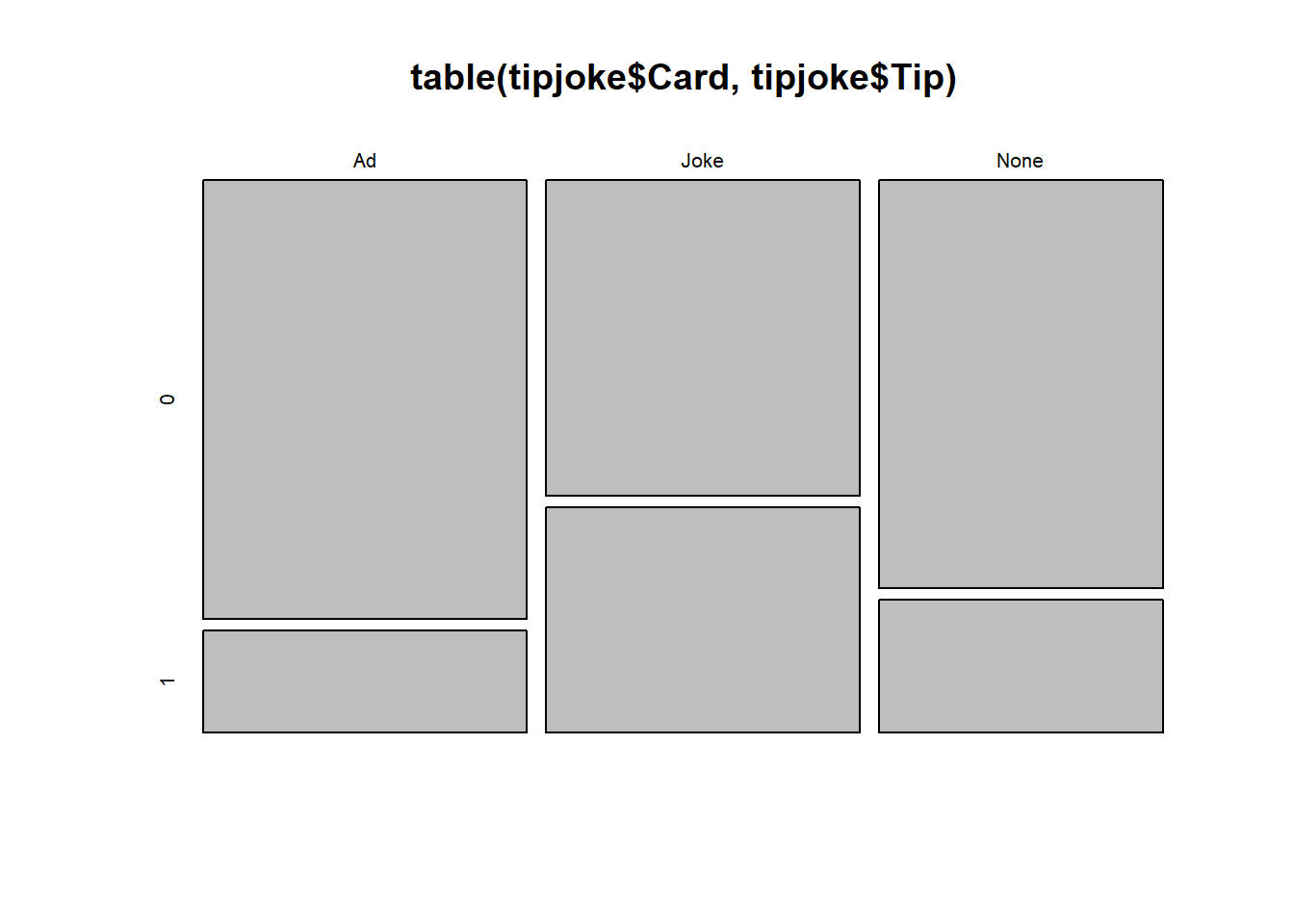 Card: None, Joke, Ad.Tip: 1 = The customer left a tip, 0 = The customer did not leave tip.