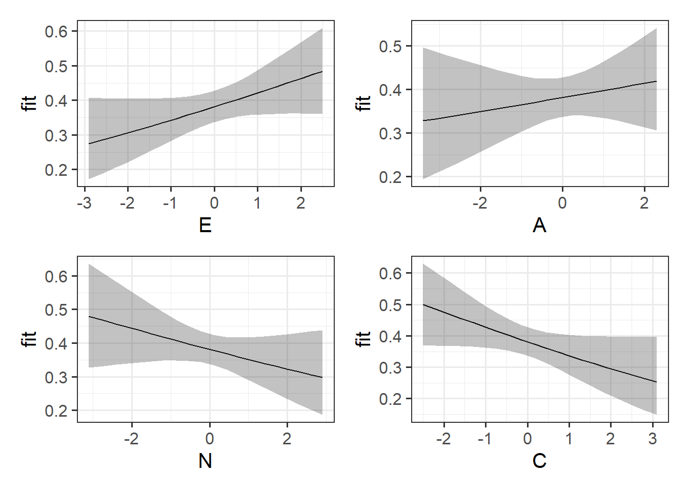 Try creating an equivalent plot for the other personality traits - before you do, what do you expect them to look like?