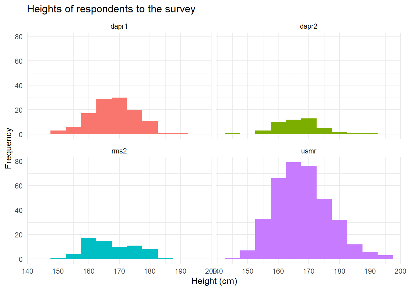 Plot the distribution of heights of all respondents. Try to make it ‘publication ready’.